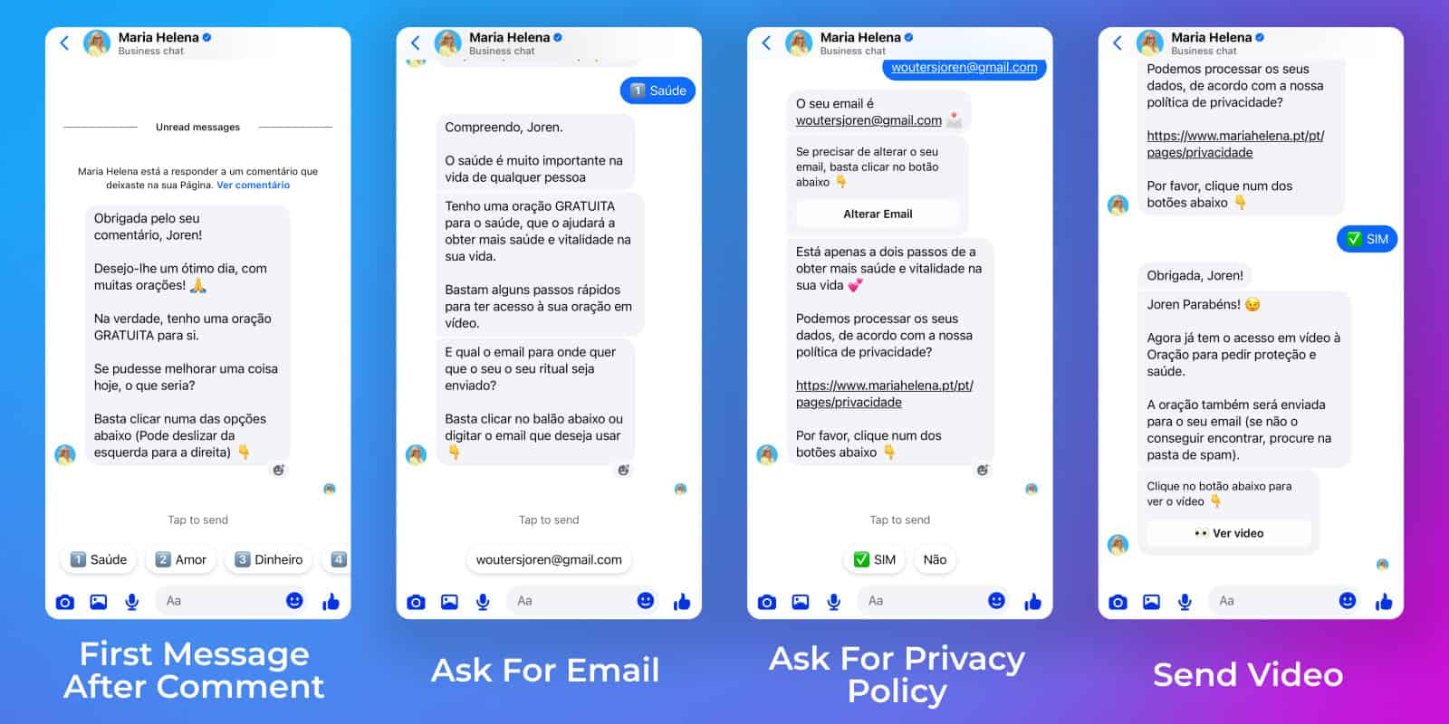 Here’s an example of a Facebook chatbot we created for one of our clients, Maria Helena.