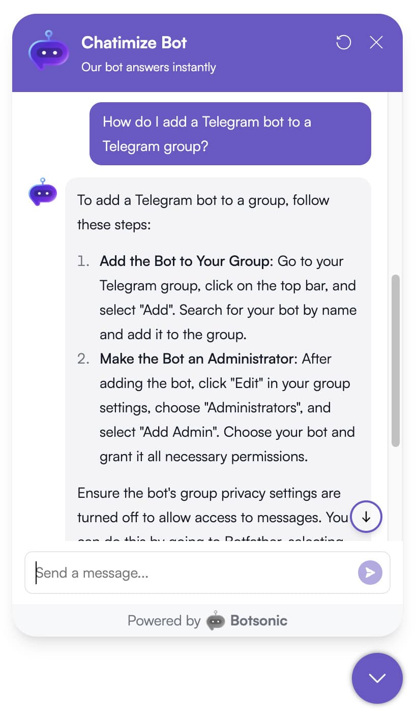This is a bit too technical for most beginners. Because of that, Botsonic’s website and Telegram channels are the most practical choices for most users.
