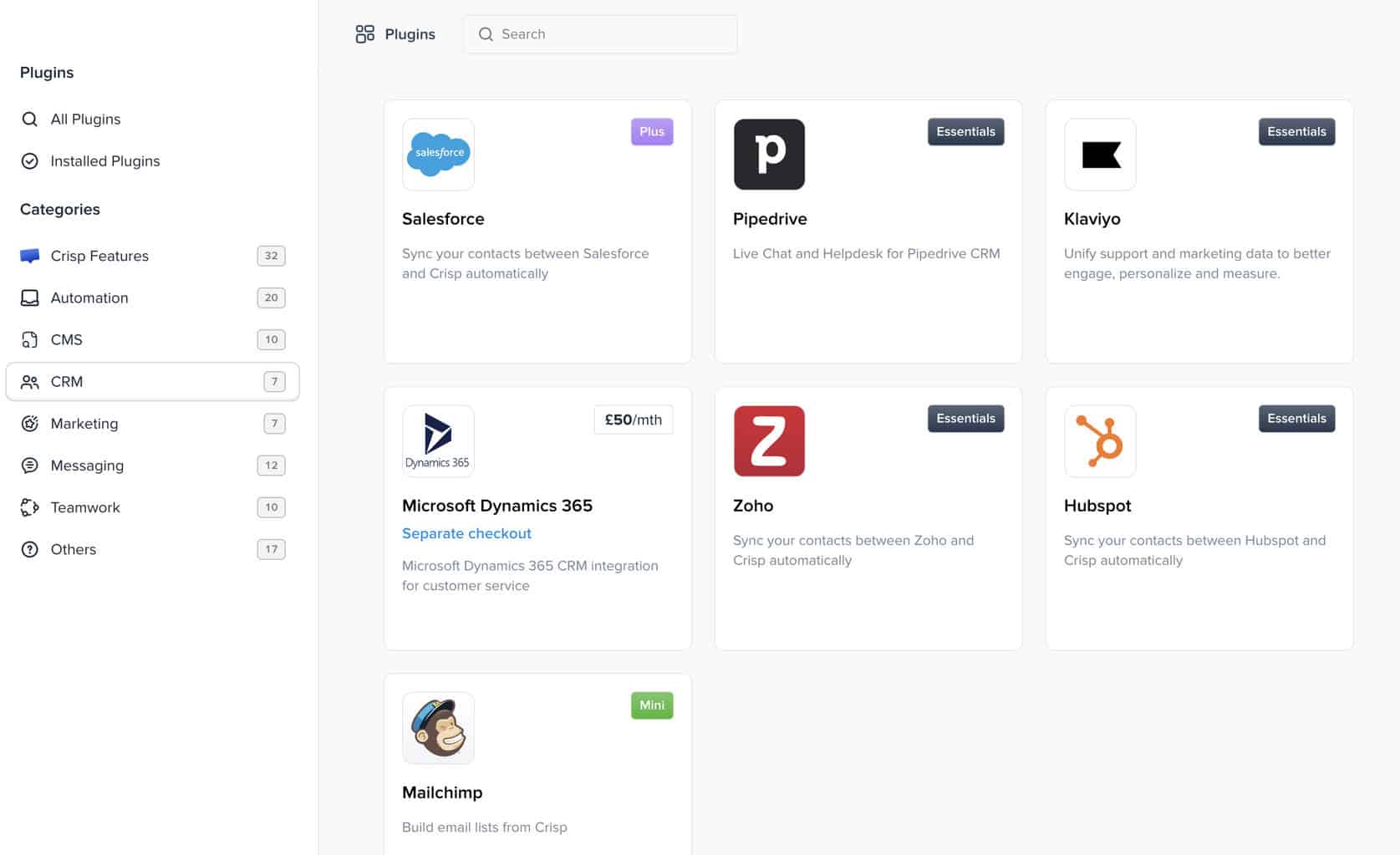 On top of that, Crisp also offers a solid range of integrations. For example, it integrates with: