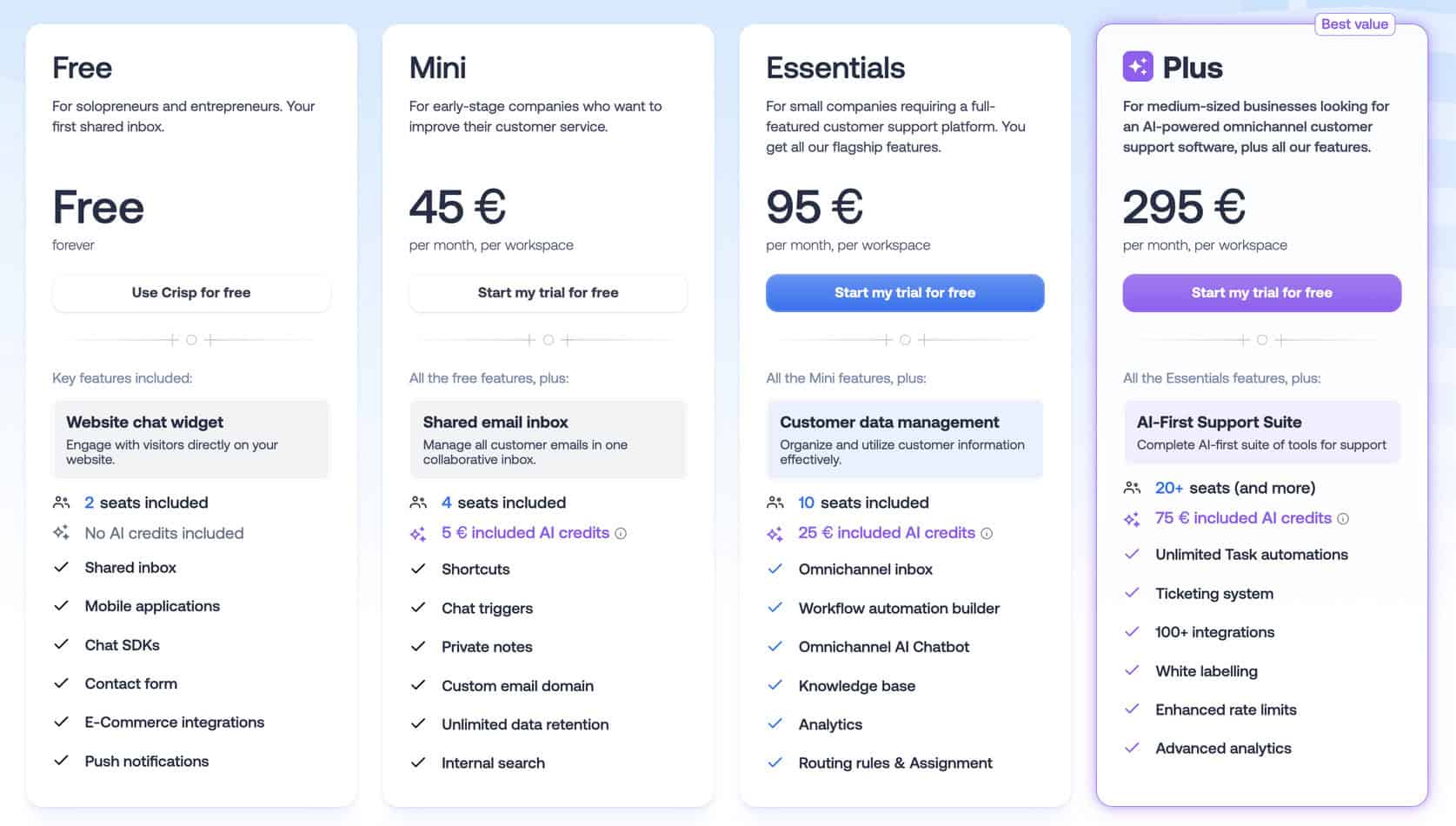 That makes Crisp especially good value for larger support teams.