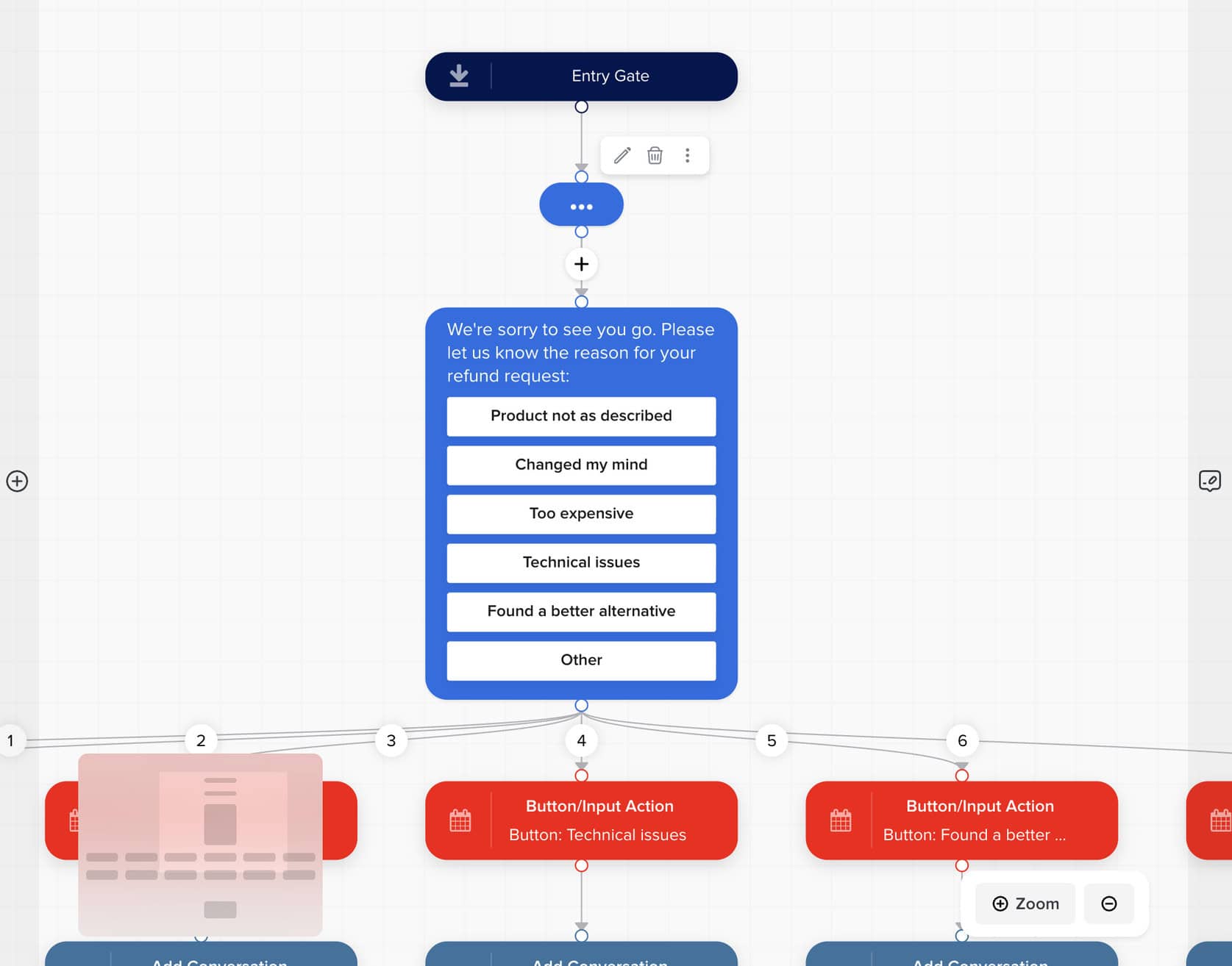 For example, someone asking for a refund could be moved into a structured flow with buttons and follow-up steps. That’s often better than relying on free-form AI responses alone: