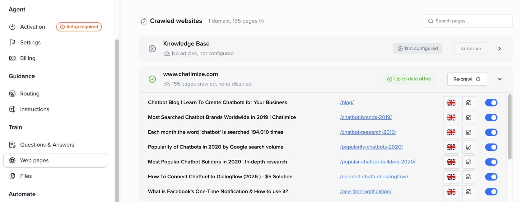 This is the foundation of the AI agent. During testing, I trained Hugo on all three types of sources, and the setup process was smooth.